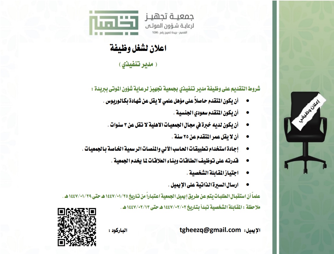إعلان لشغل وظيفة مدير تنفيذي