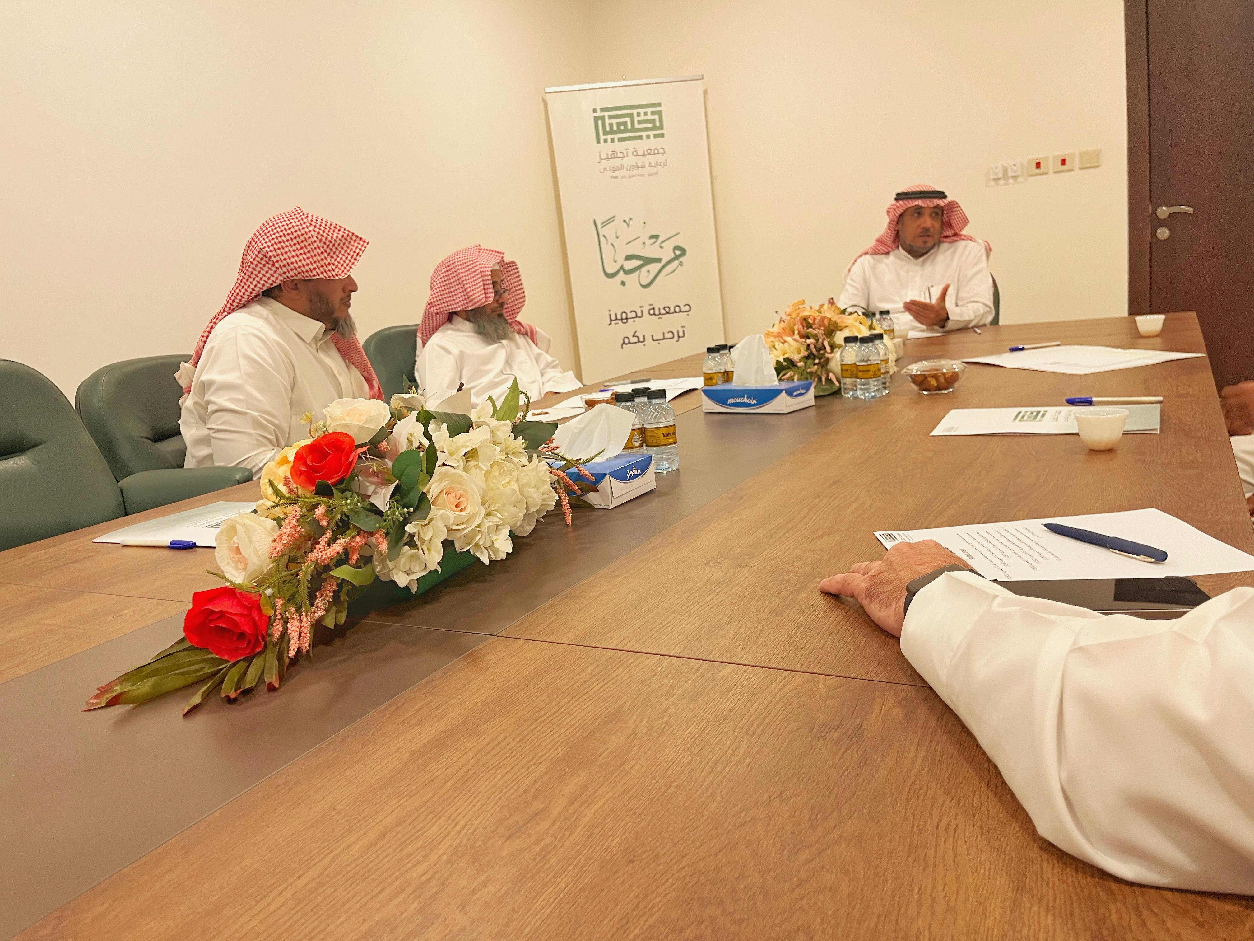 عقد المدير التنفيذي لجمعية تجهيز ببريدة الأستاذ محمد بن ناصر المجحدي اجتماع مع فريق العمل الميداني بالجمعية مشرفين المقابر والمغاسل ومركز البلاغات والطوارئ وذلك لمناقشة سير العمل وآلية مركز البلاغات وتطوير تقديم الخدمة لذوي المتوفى والمشيعين داخل المقبرة وفي المغسلة.