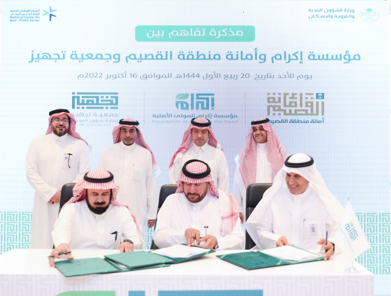 بحضور معالي وزير وزارة الشؤون البلدية والقروية والإسكان رئيس مجلس أمناء (إكرام) وقع رئيس مجلس إدارة جمعية تجهيز لرعاية شؤون الموتى ببريدة المهندس عبدالعزيز المهوس مذكرة تفاهم مع سعادة أمين منطقة القصيم المهندس محمد المجلي في مقر الوزارة يهدف إلى تفعيل التعاون المشترك بين الجهتين لتقديم أفضل الخدمات للمستفيدين في مجال إكرام الموتى وتمشياً مع تحقيق أهداف رؤية المملكة 2030 راجين أن يحقق ذلك الأهداف المنشودة في خدمة المجتمع.